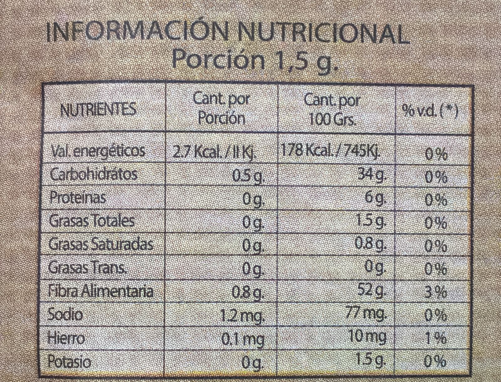 BENEFICIOS: No contiene cafeína, tiene varios aportes en vitaminas B, C, E y minerales como el hierro, magnesio, calcio y potasio. También es energizante y ayuda a reducir el riesgo de cáncer de colon, ayuda a dolores de garganta, problemas pulmonares y tos.