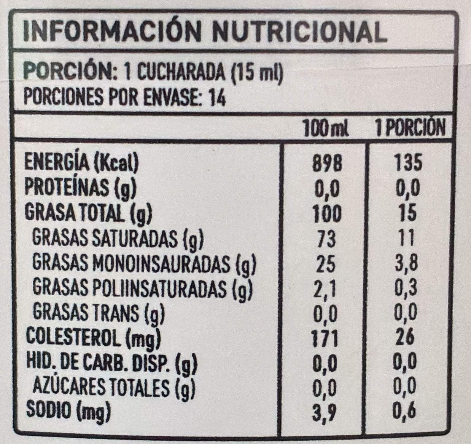 MODO DE USO: Es ideal para cocinas a alta temperatura debido a su alto punto de ebullición y es libre de lactosa, se puede usar para saltear, freír, hornear o acompañamiento en otros platos